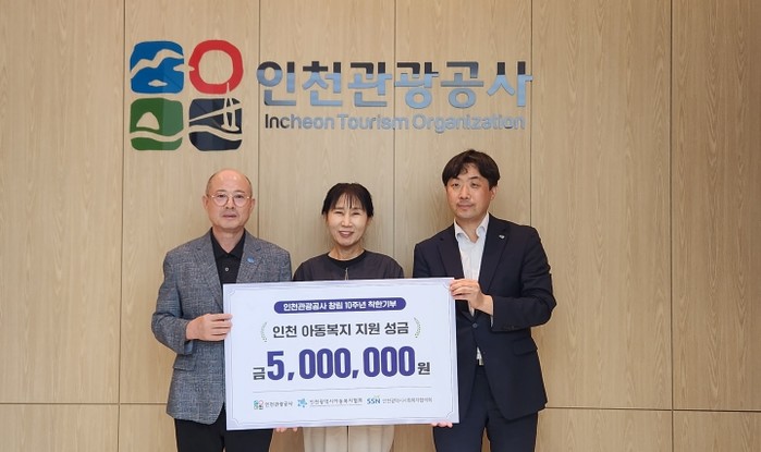 [파이낸셜경제=김기보 기자] 인천관광공사가 창립 10주년을 맞아 인천지역 아동복지 지원 성금 500만원을 인천아동복지협회에 전달했다.