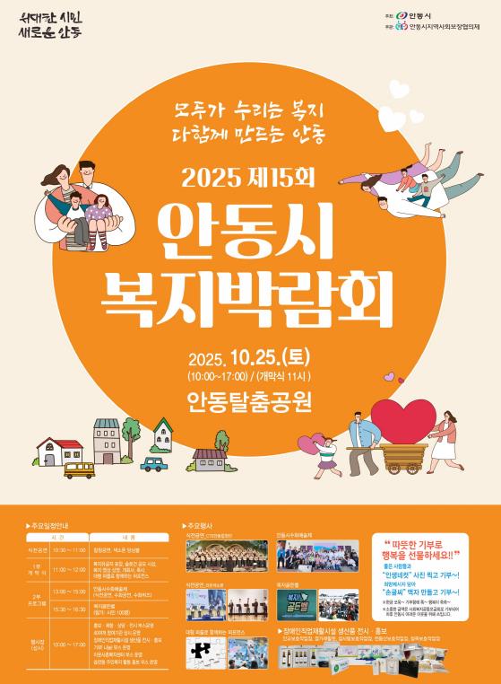이번 박람회는 안동시가 주최하고 안동시지역사회보장협의체가 주관하며, 시민이 직접 참여해 선정한 슬로건 “모두가 누리는 복지! 다함께 만드는 안동!” 아래 지역 복지의 현재와 미래를 함께 그리는 시민 참여형 축제로 열린다.