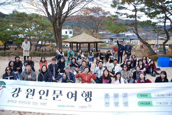 [파이낸셜경제=조성환 기자] 강원관광재단은 지난 11월 8일과 9일 이틀간 춘천 일원에서 인문학 테마 여행 프로그램을 운영해 130여 명의 참가자들이 인문학 프로그램을 즐겼다고 밝혔다.