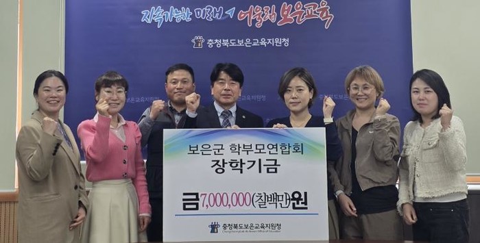[파이낸셜경제=김기보 기자] 보은군학교학부모연합회는 보은교육지원청을 방문해 지역 학생들을 위한 장학금 700만원을 기탁했다고 6일 밝혔다.