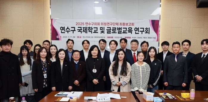 [파이낸셜경제=김기보 기자] 연수구의회 의원연구단체인 '연수구 국제학교 및 글로벌교육 연구회'(대표의원 박민협)는 2025년 11월 17일, 연수구의회 기획복지위원회실에서 최종보고회를 개최했다.