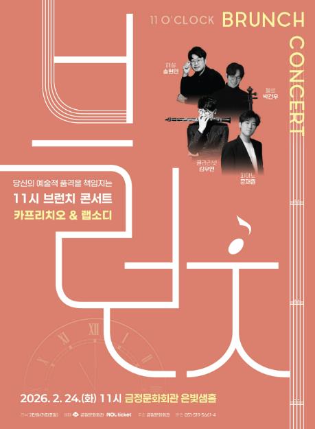 [파이낸셜경제=박영진 기자] 부산 금정구 금정문화회관 은빛샘홀에서 펼쳐질 2026년 2월 브런치 콘서트는 ‘카프리치오 & 랩소디’란 특별한 주제로 관객들을 찾아온다.