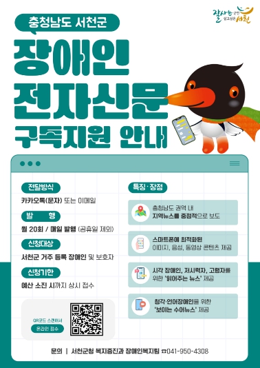 [파이낸셜경제=김영란 기자] 서천군은 정보 취약계층인 장애인의 정보 접근성 향상과 알권리 보장을 위해 ‘장애인 전자신문 구독 지원사업’을 오는 3월부터 본격 시행한다.