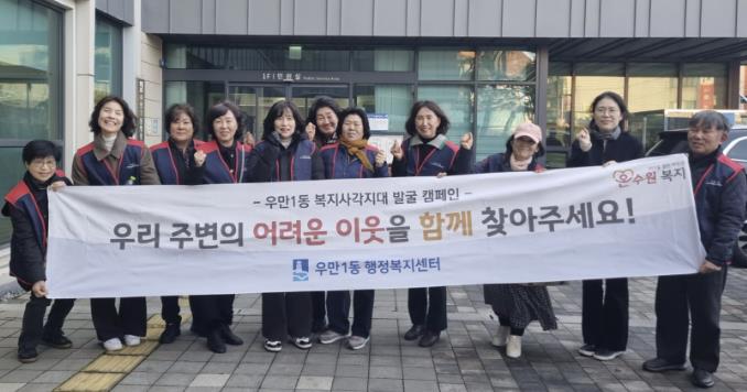 [파이낸셜경제=김기보 기자] 수원시 팔달구 우만1동은 지난 11일 동절기를 맞아 지역 내 복지사각지대 해소를 위한 동절기 복지사각지대 발굴 캠페인을 실시했다.