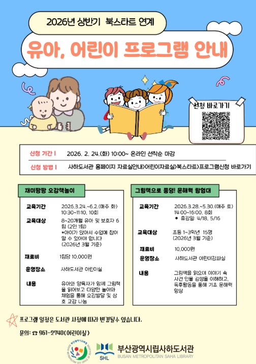 김정남 사하도서관장은 “이번 북스타트 연계 프로그램은 아이들의 언어 이해력과 독서 흥미를 키우는 계기가 될 것”이라며 “그림책을 매개로 자녀와 보호자가 정서적으로 교감하며 가정 내 독서문화가 확산하길 바란다”고 말했다.