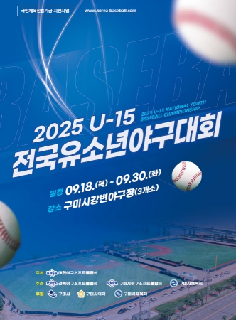 [파이낸셜경제=김지훈 기자] 구미시가 9월 18일부터 30일까지 강변야구장 3개 구장에서 'U-15 전국 유소년 야구대회'를 개최한다.