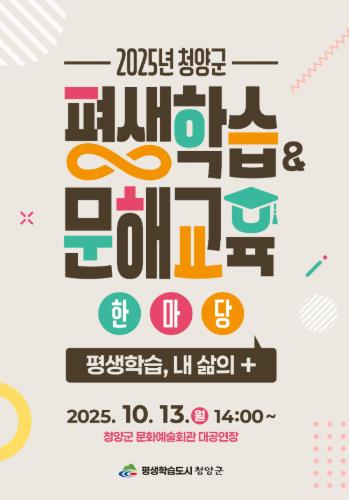 [파이낸셜경제=김영란 기자] 청양군은 오는 13일 오후 2시 청양군 문화예술회관 대공연장에서 군민 모두가 함께 배우고 즐기는 축제, ‘2025 평생학습 & 문해교육 한마당’을 개최한다.