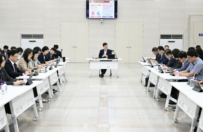 | ▲ 이민근 안산시장이 간부 공무원들과 회의를 진행하고 있다. |