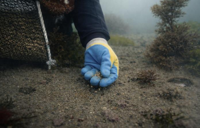| ▲ 잘피 씨앗을 뿌리는 모습 |