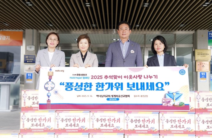 [파이낸셜경제=조성환 기자] 하나님의교회세계복음선교협회(총회장 김주철)는 추석 명절을 맞아 9월 16일 홍천군청에 방문하여 2025 추석맞이 이웃사랑 나누기 식료품 20세트(총 80~100만 원 상당)를 전달했다.