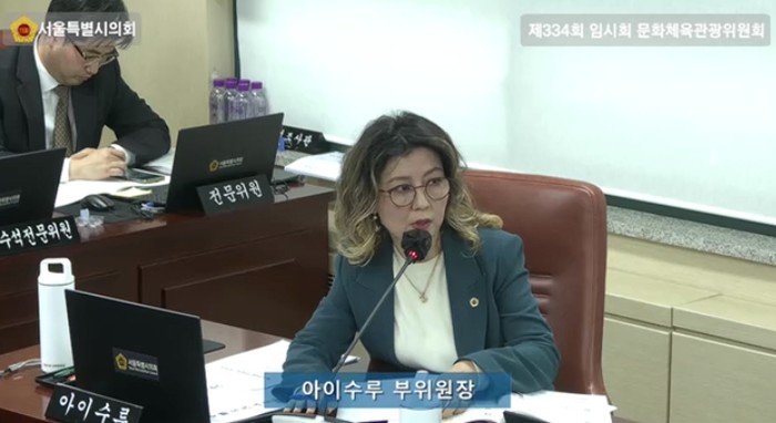 [파이낸셜경제=김예빈 기자] 서울특별시의회 문화체육관광위원회 아이수루 부위원장(더불어민주당·비례)이 6일 열린 제334회 임시회 문화체육관광위원회 관광체육국 소관 업무보고에서, 전문체육시설 건립에 있어 서남권 일대 위치한 상대적으로 소외된 금천구의 장애인 체육시설 건립을 제안하고, 장애인의 문화체육활동 활성화를 위한 정책을 수립해줄 것을 촉구했다.