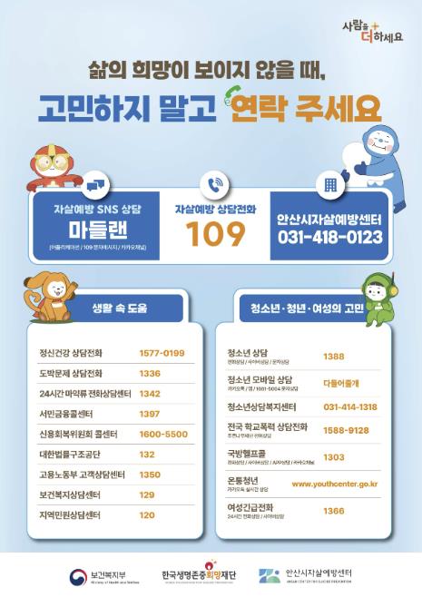 | ▲ 안산시자살예방센터 자살예방 상담전화 디지털 홍보자료 |