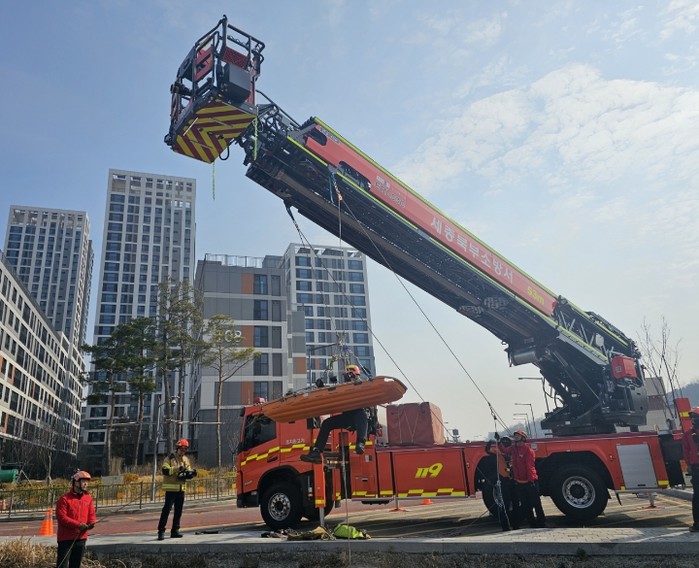 주요 훈련 내용은 ▲소방 드론 활용 상공 수색 및 인명 구조 ▲고가사다리차 현장 적응 훈련 ▲인명 검색 기법 및 로프 구조 훈련 등이다.