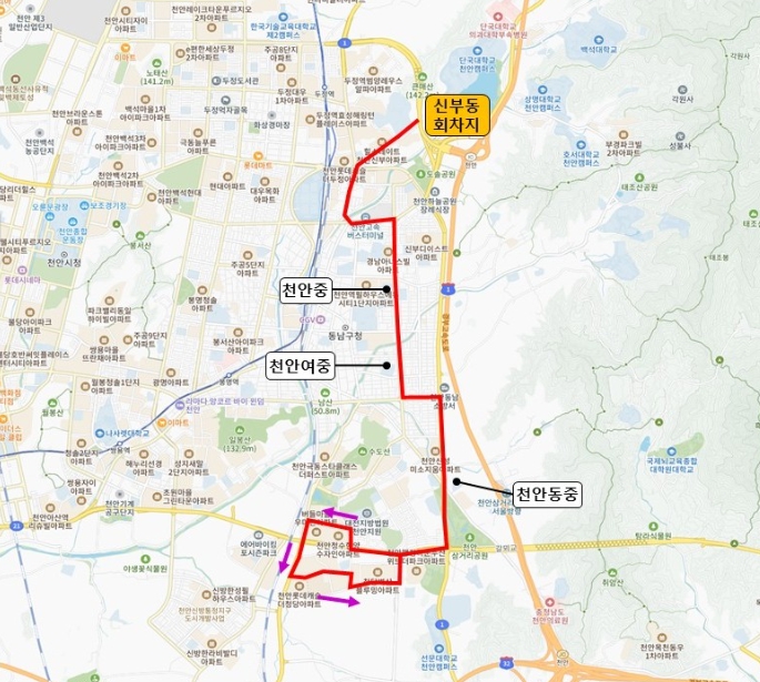 시는 등·하교 시간을 고려해 배차를 확정했으며, 천안동중·천안여중·천안중학교 등 주요 학교 인근의 천안대로와 충절로를 경유하도록 설계해 학생들의 접근성을 높였다.