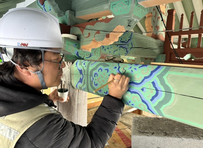 이번 사업은 국가유산청 국립문화유산연구원(원장 임종덕)이 복원한 전통 녹색안료 ‘동록(銅綠)’을 사용했다. 이는 연구원이 민간 기업에 제조기술을 이전해 생산된 안료가 문화유산 보수정비 현장에 처음으로 적용된 사례로그 의미를 더하고 있다.