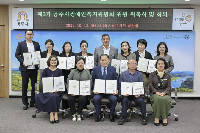 [파이낸셜경제=김영란 기자] 공주시는 지난 13일 시청 집현실에서 ‘제3기 공주시 장애인복지위원회 위원 위촉식 및 회의’를 개최하고, 민관이 함께 장애인 정책 현안 해결에 나서기 위한 본격적인 활동을 시작했다고 밝혔다.