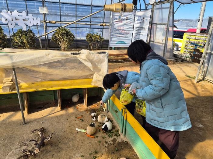 | ▲ 2월 7일 구로구 드림스타트 참여 아동들이 체험농장에서 동물 먹이주기 체험을 하고 있다 |