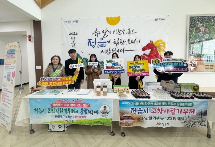 한편, 고향사랑기부제 참여는 ‘고향사랑e음’ 홈페이지나 주요 은행 앱, 전국 농협 창구 어디서나 가능하다. 연간 2000만원까지 기부할 수 있으며, 모인 기부금은 사회적 취약계층 지원과 청소년 육성, 문화 예술 증진 등 정읍 시민의 복리 증진을 위해 쓰인다.