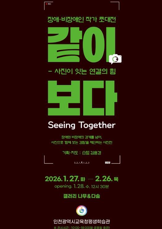 [파이낸셜경제=김기보 기자] 인천광역시교육청평생학습관은 인천 시민을 대상으로 2층 갤러리 나무와 다솜에서 ‘같이, 보다(Seeing Together) 장애인 작가 초대전’을 개최한다.
