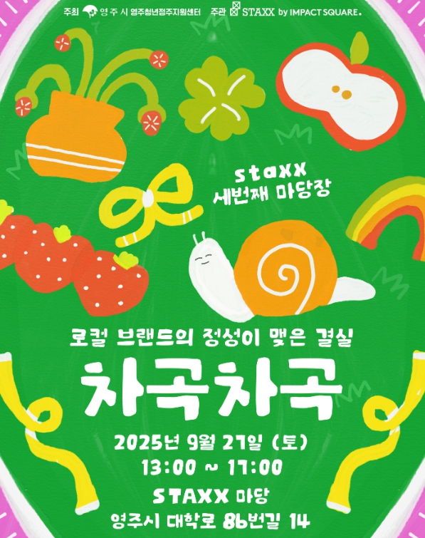 [파이낸셜경제=김지훈 기자] 영주시는 오는 9월 27일, 영주시 대학로 86번길 14 소재 STAXX에서 ‘로컬 브랜드마켓 '차곡차곡'’을 개최한다.