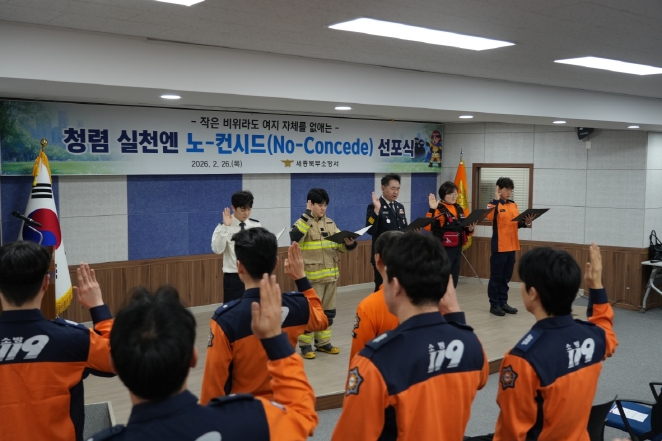 김전수 세종북부소방서장은 “이번 선포는 단순한 비위 적발을 넘어 부패가 싹틀 수 있는 환경 자체를 원천 차단하겠다는 선제적 조치”라며 “아주 작은 것부터 엄격한 공직 윤리를 적용해 시민에게 한 점 부끄럼 없는 신뢰받는 조직을 만들어 가겠다”고 말했다.