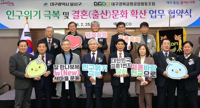 [파이낸셜경제=김지훈 기자] 대구 달서구는 25일 EXCO에서 대구경북금형공업협동조합(이사장 박만희)과 인구위기 극복 및 결혼·출산문화 확산을 위한 업무협약을 체결했다.