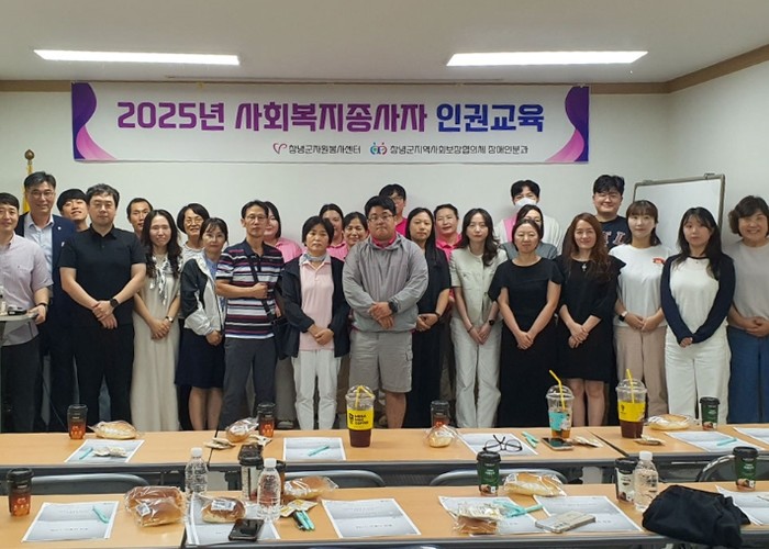 이번 교육은 ‘사회복지시설 현장 종사자 인권교육’을 주제로 사회적협동조합 더꿈 통합돌봄센터 김나영 대표가 강의를 맡았다. 창녕군장애인생활시설, 창녕군장애인가족지원센터, 창녕교육지원청 특수교육지원센터 등 10개 기관에서 30여 명이 참석해 종사자와 이용자의 인권에 대한 이해를 넓히는 시간을 가졌다.