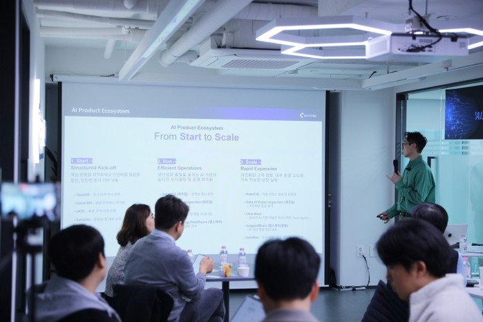 | ▲ SotaTek Korea 전문가, 세미나에서 기업을 위한 AI 전략과 실전 적용 방안을 소개하고 있다. |