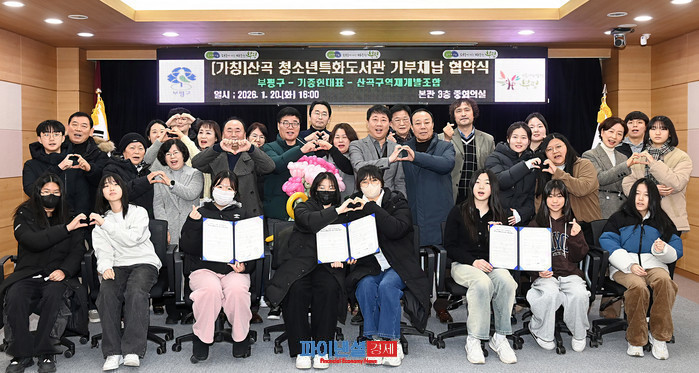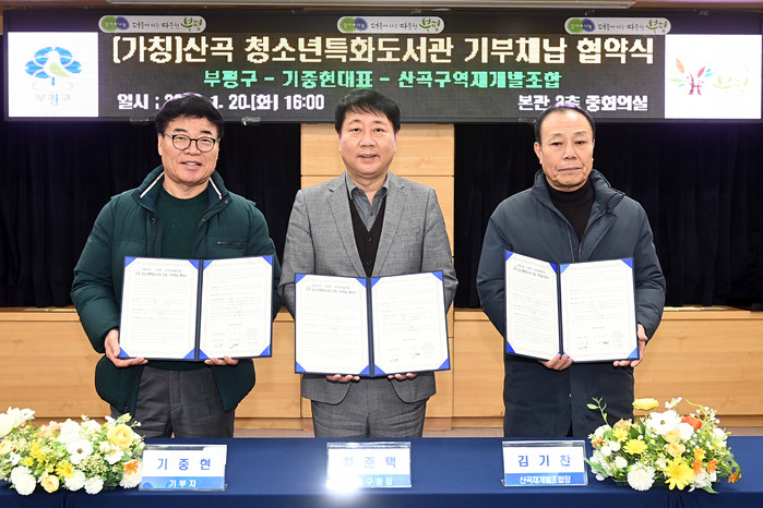 차준택 구청장은 “지역사회를 위해 개인의 소중한 재산을 흔쾌히 내주신 기중현 대표님의 결정에 깊은 존경과 감사를 표한다”며 “산곡-청소년특화 도서관이 기부자의 뜻에 따라 청소년들이 사랑하는 공간으로 만들어질 수 있도록 모든 행정적 지원을 아끼지 않을 것”이라고 말했다.