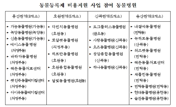 | ▲ 동물등록제 비용지원 사업 참여 동물병원 |