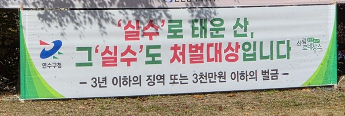 연수구 관계자는 “입산 시 인화성 물질을 휴대하지 말고, 불씨 관리에 특히 주의해 달라.”라며 “구민 모두가 산불에 대한 경각심을 갖고, 산불 예방에 동참해 주시길 바란다.”라고 말했다.