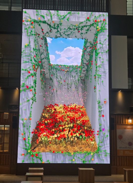먼저 ‘누들플랫폼’은 관람객들이 1층 로비에 설치된 대형 스크린 화면을 통해 재생되는 영상을 보며 잠시나마 쉼을 느낄 수 있도록 ‘힐링 미디어아트 콘텐츠’를 제작했다.