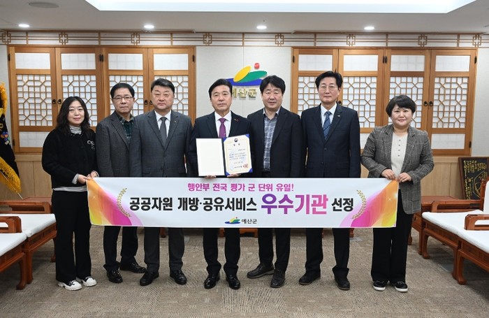 [파이낸셜경제=김영란 기자] 예산군은 행정안전부가 주관한 ‘2025년 공공자원 개방·공유서비스 실적평가’에서 우수 지자체로 선정돼 행정안전부 장관상을 수상했다고 밝혔다.