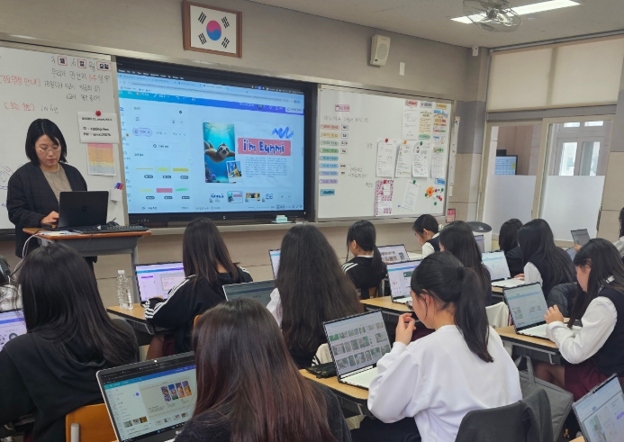 또한 디자인 플랫폼 ‘캔바(CANVA)’를 활용해 창의적인 발표 자료를 직접 제작하는 방법을 익히며 드림노트북을 단순한 기기 사용을 넘어 수업 과제를 효과적으로 구성하고 결과물로 완성하는 학습 도구로 활용하는 방법을 배웠다.