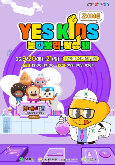 [파이낸셜경제=김지훈 기자] 달성문화재단 달성문화도시센터가 오는 9월 20일부터 21일까지 양일간 국립대구과학관 일대에서 ‘YES! 키즈존 3회차’를 개최한다.