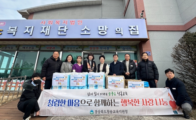 [파이낸셜경제=김지훈 기자] 경상북도청송교육지원청은 설 명절을 앞두고 10일 청송군에 있는 노인복지시설 2곳(소망의집, 청송국민노인종합센터)을 방문하여 생필품 등 위문품을 전달했다.