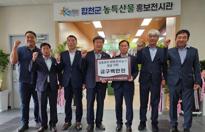 김윤철 합천군수는 “피해 농가를 위해 귀중한 성금을 기탁해 주셔서 깊이 감사드리며, 한우농가에 큰 힘이 될 것”이라고 전했다.