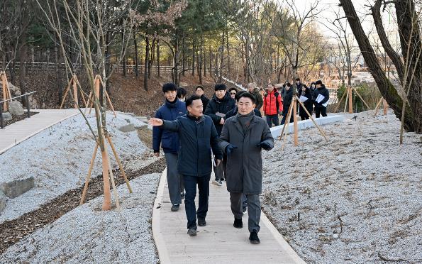 [파이낸셜경제=김영란 기자] 의정부시는 2026년 병오년 새해를 맞아 1월 8일 녹지 인프라 확충을 위한 주요 사업 대상지를 현장 점검했다. 점검 대상지는 ▲장암동 실외정원 ▲용현산업단지 완충녹지 산책로 및 가로숲길 조성 사업지 ▲민락동 감성쉼터 등이다. 이번 점검은 도심 속 쉼터와 실외정원 확충, 안전한 보행환경 조성, 산림 명소 발굴 등 녹지 인프라 조성 사업의 추진 현황을 점검하고, 시민들이 일상에서 녹지 공간을 보다 쉽게 이용할 수 있도록 추진 중인 ‘도시숲 프로젝트’의 사업 방향과 현장 여건을 확인하기 위해 진행됐다.