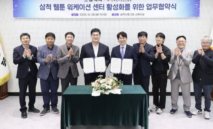 이번 협약은 만화·웹툰 작가 및 관련 기관·단체들이 ‘삼척 웹툰 워케이션 센터’를 일과 휴식이 공존하는 공간으로 활용할 수 있도록 상호 이해와 협력을 증진하는 내용이 담겨 있다.