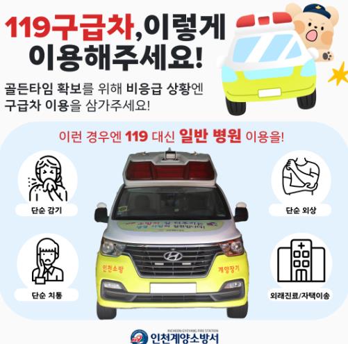 [파이낸셜경제=김기보 기자] 계양소방서는 응급환자의 골든타임 확보를 위해 비응급환자의 119구급차 이용 자제를 당부한다고 14일 밝혔다.