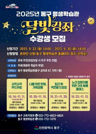 | ▲ 동구 평생학습관, 2025년 달빛강좌 수강생 모집 |