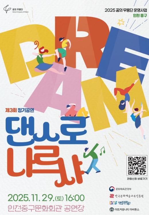 [파이낸셜경제=김기보 기자] (재)인천중구문화재단은 2025년 꿈의 무용단 인천 중구 ‘댄스로 나르샤’의 제3회 정기 공연을 오는 29일 오후 4시 인천중구문화회관 공연장에서 개최한다고 밝혔다.