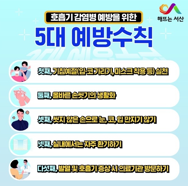 김용란 서산시 보건소장은 “호흡기감염병 예방수칙은 우리 모두의 건강을 지키는 가장 효과적인 방법입니다"라며 "면역력이 취약한 고령층과 기저질환자는 더욱 각별한 주의가 필요합니다"라고 말했다.