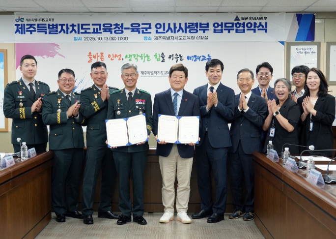 [파이낸셜경제=김영란 기자] 제주특별자치도교육청은 13일 도교육청 상황실에서 육군 인사사령부와 고등학생들의 진로 탐색 기회 확대를 위한 업무협약을 체결했다.