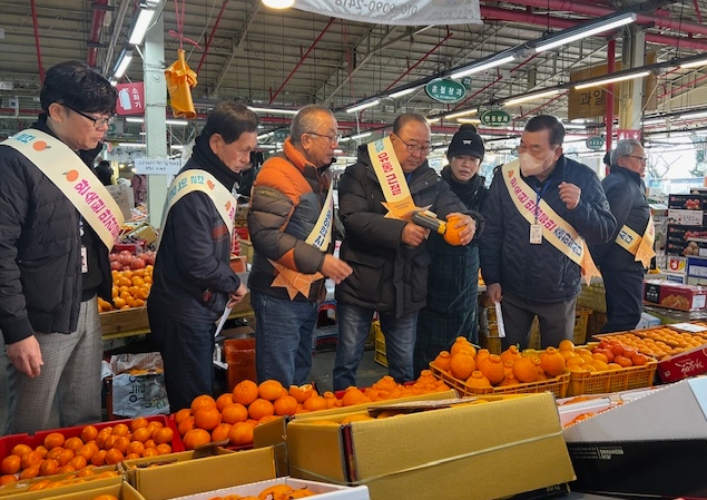 [파이낸셜경제=김영란 기자] 서귀포시는 설 명절을 앞두고 만감류 유통질서 확립과 가격 안정화를 위해 29일 만감류연합회와 서귀포시가 합동으로 서귀포시 향토오일시장과 매일올레시장을 방문해 만감류 및 온주밀감 상품품질기준 안내문을 상인에게 전달하고, 상품 품질기준 준수 및 만감류 완숙과 판매 등에 대한 현장 중심 홍보 활동을 실시했다.