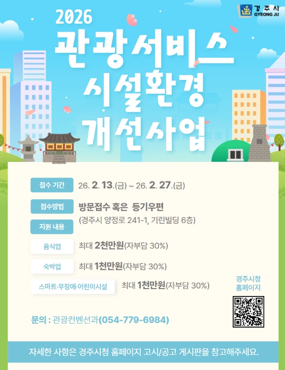 | ▲ 경주시 ‘2026년 관광서비스 시설환경개선사업’ 참여업체 모집 홍보물 |