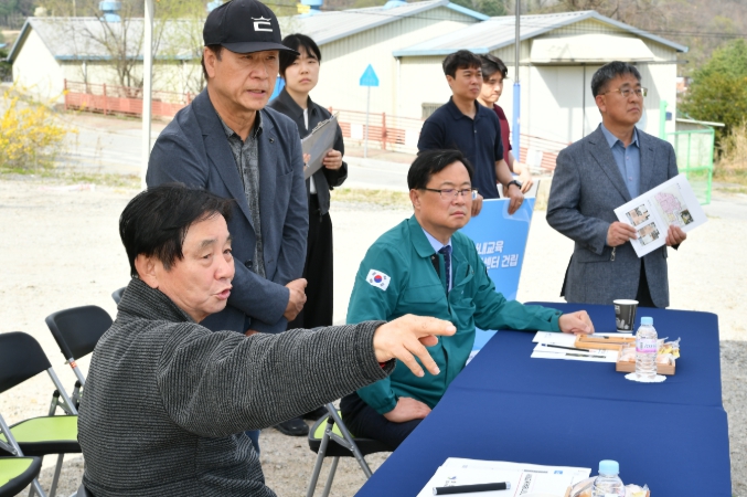 | ▲ 최문순 화처군수가 지난 16일 사내면 고령자 복지주택 건설 예정 부지를 찾아 사업 진행 상황을 점검하고 있다. |