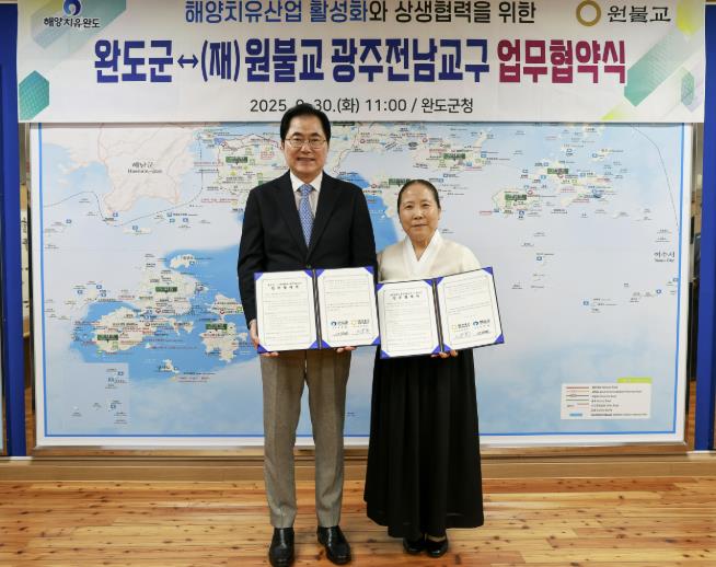 [파이낸셜경제=김영란 기자] 완도군이 완도 해양치유산업 활성화를 위해 (재)원불교 광주전남교구와 업무 협약을 체결했다.