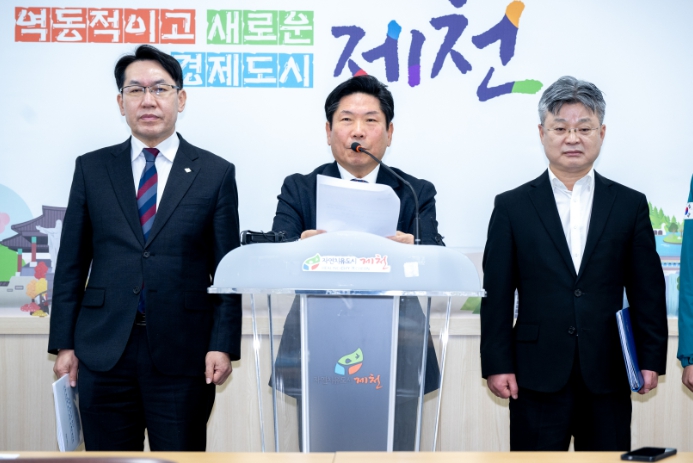 [파이낸셜경제=김영란 기자] 김창규 제천시장이 5일 시청 브리핑실에서 기자회견을 열고, 지난 1월 21일 시의회에서 의결된 ‘제천시 하소동 화재사고 사망자 유족의 지원에 관한 조례안’에 대한 환영 입장과 향후 추진 계획을 발표했다.