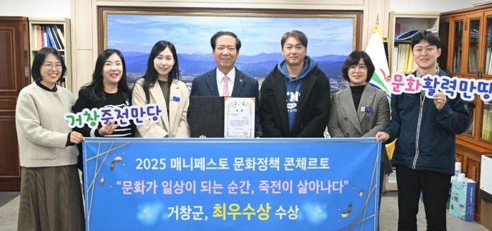 [파이낸셜경제=김영란 기자] 거창군은 강원특별자치도 원주시 상지대학교에서 개최한 ‘2025 전국 기초단체장 매니페스토 문화정책 콘체르토(Concerto)’ 대회에서 문화기반 도시활력분야 ‘최우수상’을 수상했다고 26일 밝혔다.